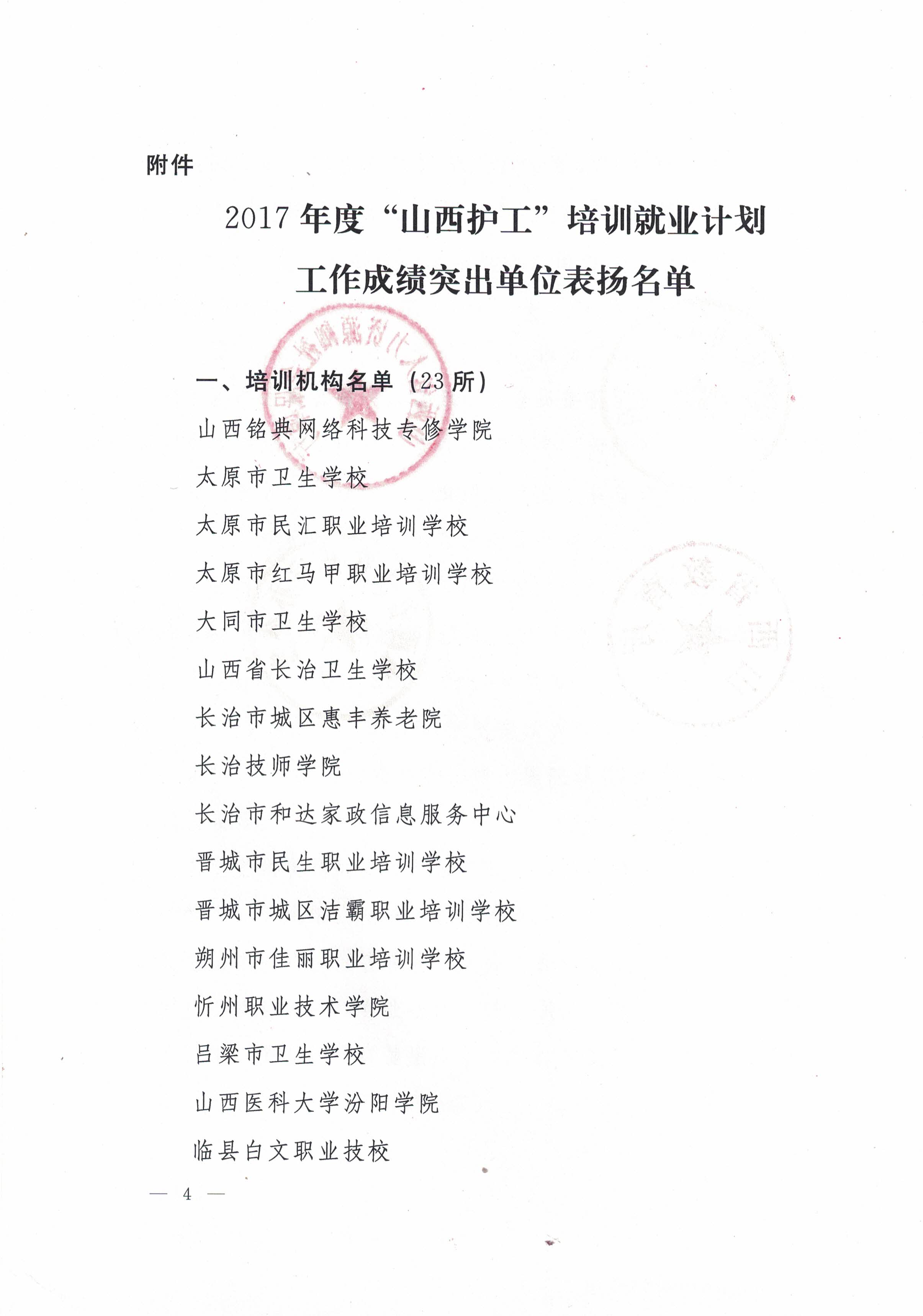 晉城市城區潔霸職業培訓學校在2017年的“山西護工”培訓計劃中成績斐然,于2018年3月26日獲得了2017年度“山西護工”培訓就業計劃工作成績突出單位的表彰。