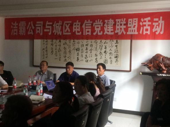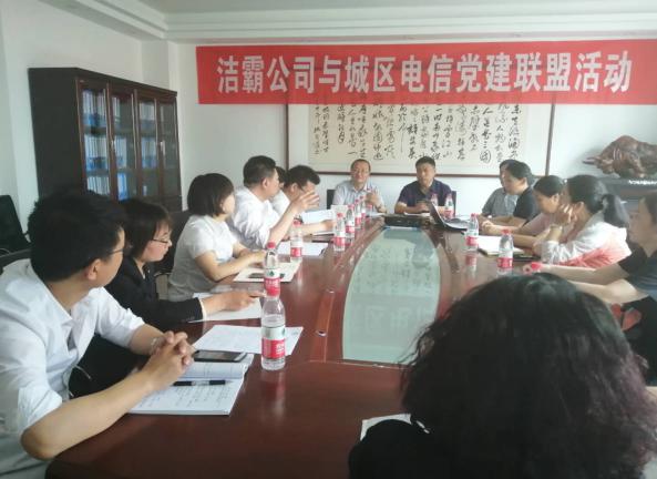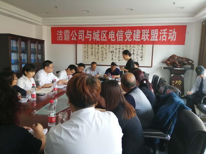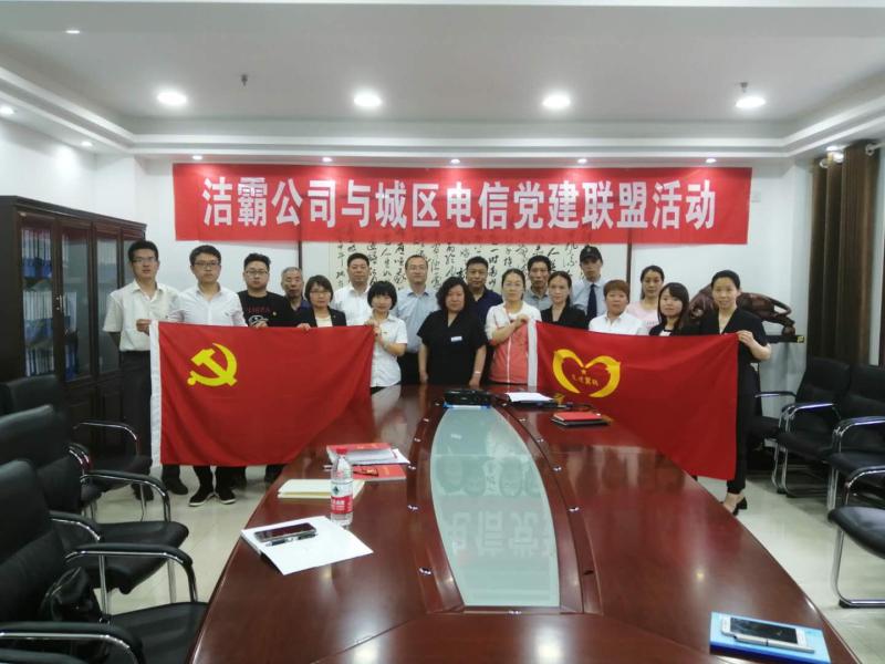 5月27日下午,潔霸公司黨支部與城區電信東城西城聯合黨支部開展了黨建聯盟活動。首先雙方對公司的概況以及黨支部成員的構成做了詳細的介紹。總經理程晉軍及支部書記李山虎對城區電信公司黨支部成員的到來表示了熱烈的歡迎。