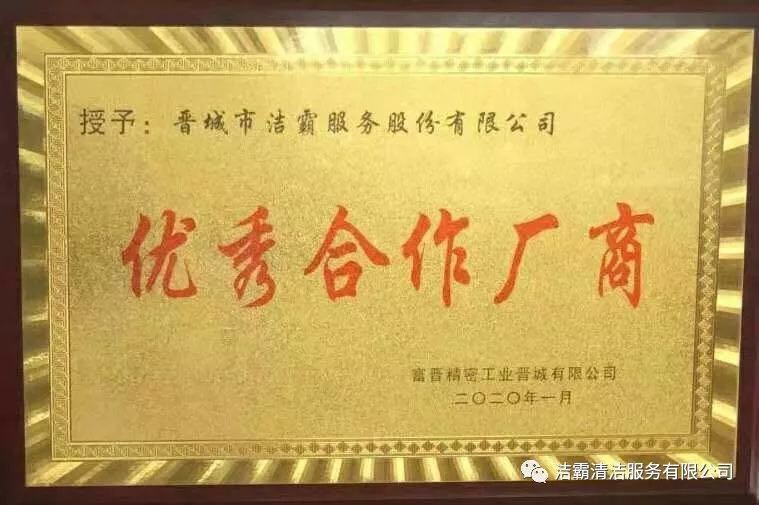 1月21日,富士康(晉城)科技工業(yè)園區(qū)召開(kāi)2019年綠化環(huán)衛(wèi)服務(wù)廠商表彰大會(huì)。會(huì)上,我公司喜獲“優(yōu)秀合作廠商”稱(chēng)號(hào)。