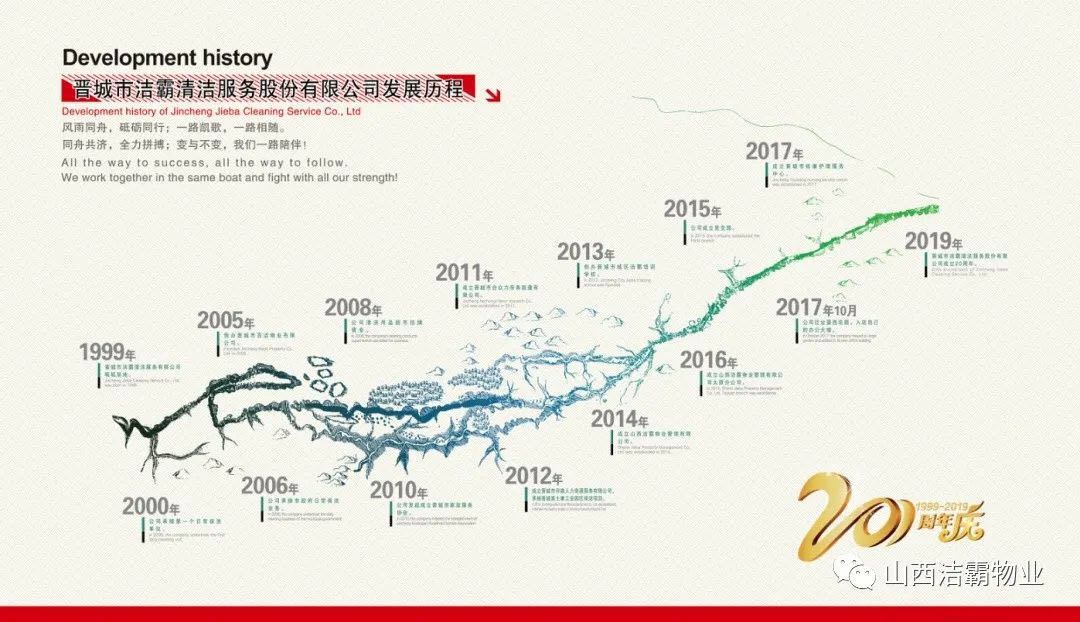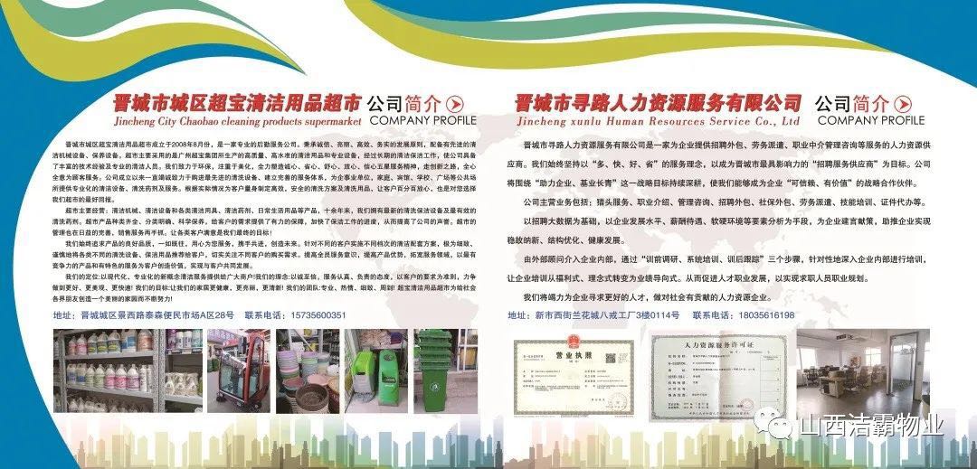 20年砥礪奮進,從一個租賃兩間辦公室名不見經傳的小公司,成長為擁有擁有辦公場所1500余平米,總資產逾千萬元,員工1500余人的晉城市家政行業的標桿企業,潔霸完成了精彩跨越,“做清潔行業的霸主”的發展定位從未改變。