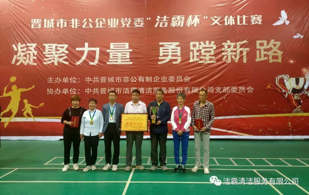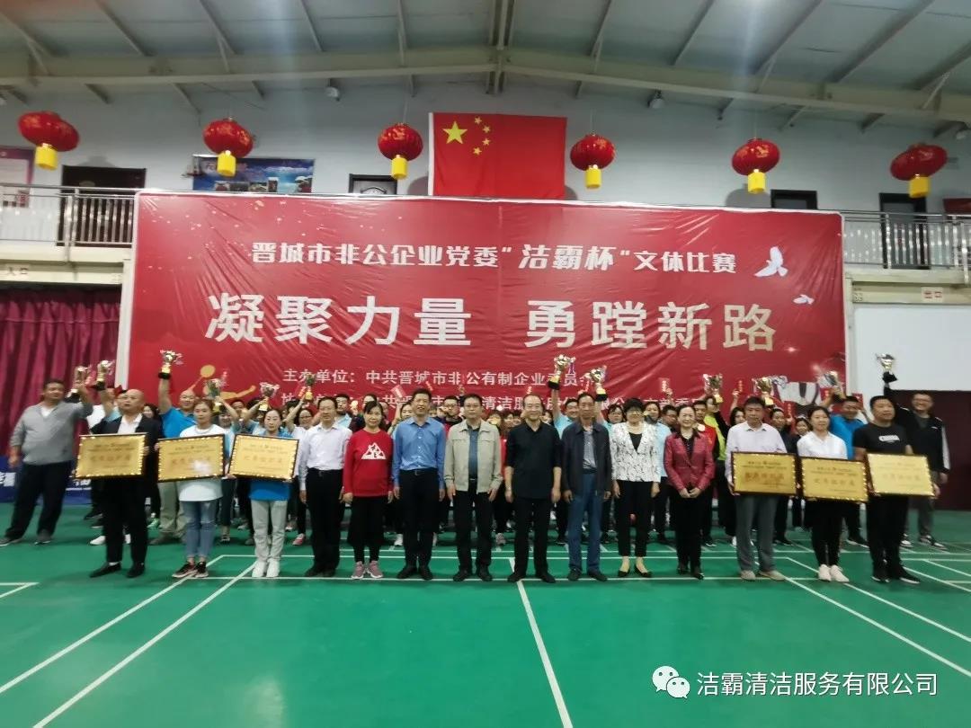 9月25日下午,晉城市非公企業黨委“潔霸杯”文體比賽落下帷幕。此次比賽由中共晉城市非公有制企業委員會主辦,中共晉城市潔霸清潔服務股份有限公司支部委員會冠名協辦。此次活動的主題是“凝聚力量 勇蹚新路”,旨在新中國成立71周年之際,全面展示非公企業黨組織開展群眾性體育活動的豐碩成果,以及廣大黨員干部創先爭優,奮發進取,勇蹚新路,爭做時代先鋒的精神風貌。