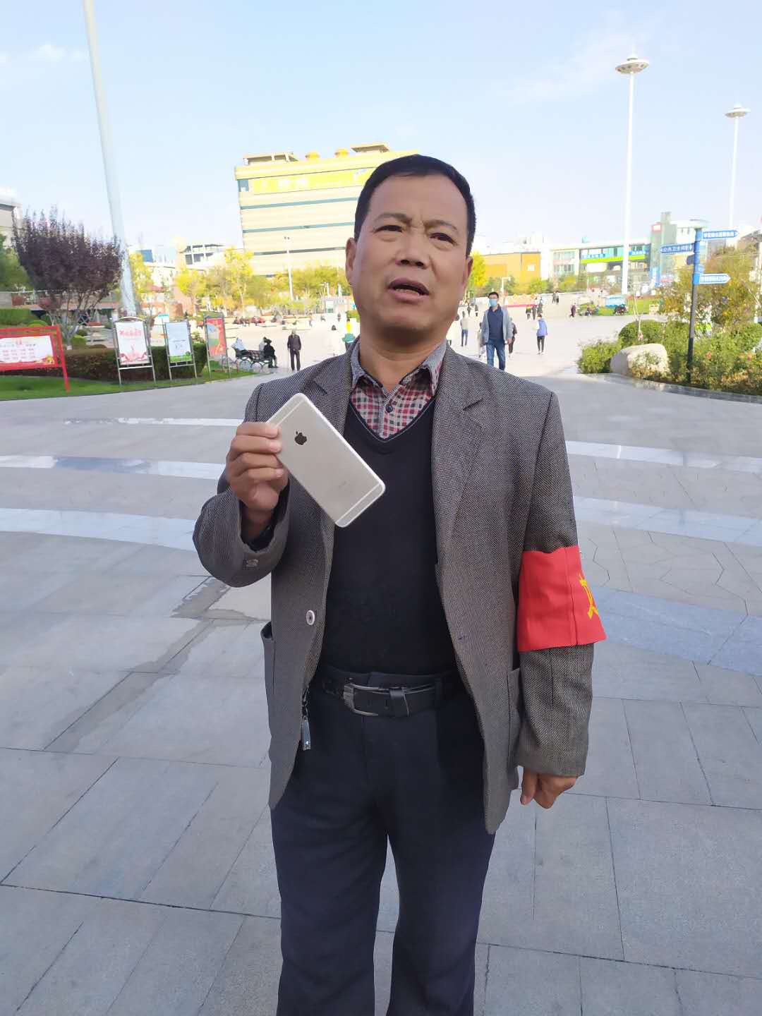 2020年10月31日下午2時30分左右,潔霸公司保安人員王紅廷師傅在人民廣場西門執勤過程中,發現臺階上被人丟失的一部銀灰色的蘋果手機,失主已經離開,為防止手機被無關人員撿走,他趕忙將手機交至人民廣場辦公室進行登記備案,并且想到失主一定焦急萬分,隨后到西門等待失主回來找手機,一個小時以后,一個面色匆匆的小姑娘來到了西門說尋找丟失的手機,王紅廷師傅把她領到廣場辦公室,讓她對自己丟失的手機進行一個簡單直觀的描述后,當場和廣場辦公室人員一同確認這個小姑娘就是手機的主人,面對丟而復得的手機,小姑娘激動地說,回來找只是僥幸心理,一直想的是手機應該早被人拿走了,沒想到真的就找到了,無數次的真誠地和王紅廷師傅說著謝謝!王紅廷師傅用簡樸的語言說,換了誰都一樣,大家都會這么做!