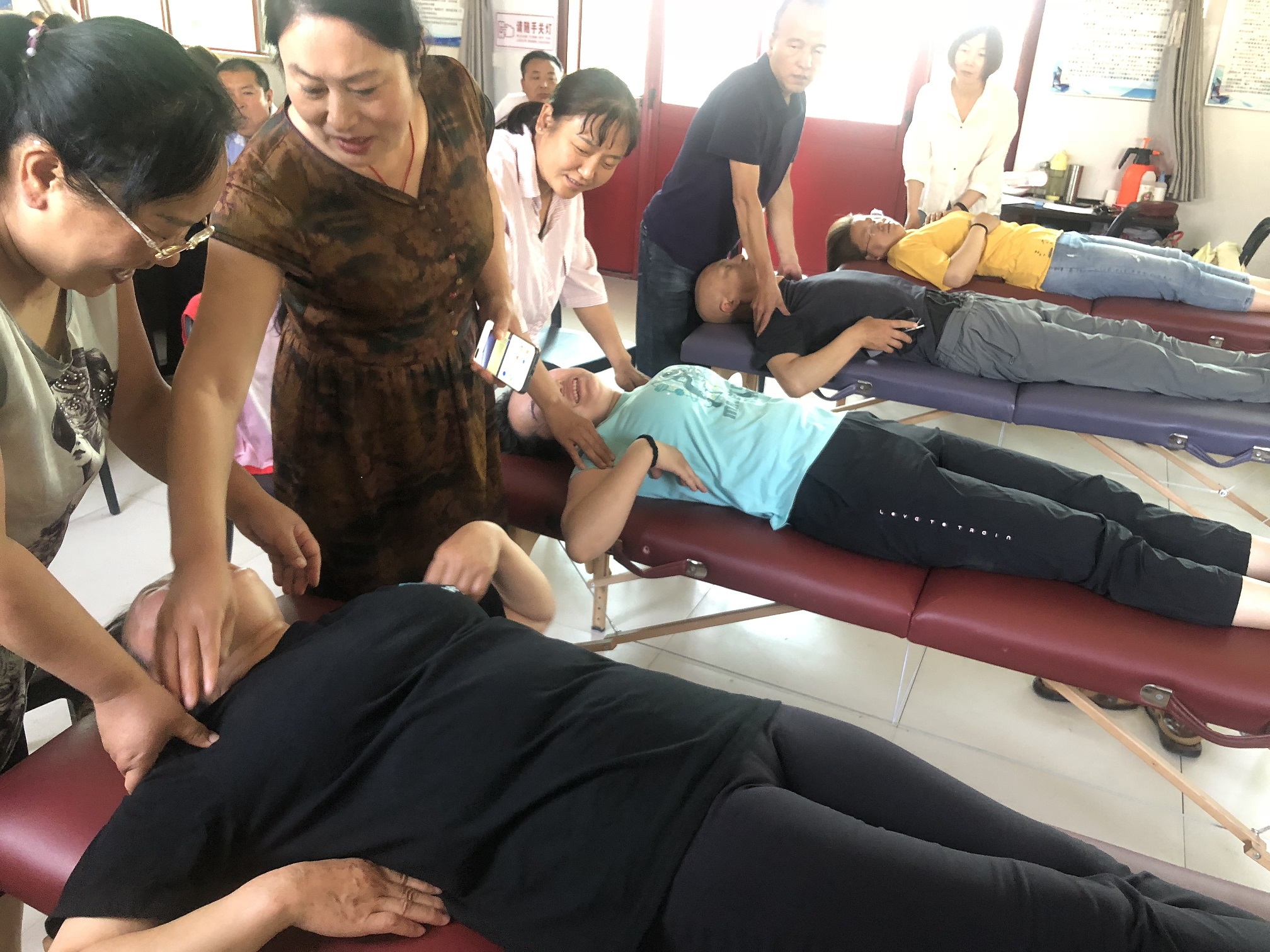 此次保健按摩師培訓,我校聘請了有多年按摩經驗和豐富授課經驗的按摩老師給學員講課。培訓過程中,采用理論和實操相結合的培訓形式。老師先將按摩理論知識教給學員,再將按摩流程演示給學員看,邊操作邊講解,再讓學員們動手實際操作,老師在一旁指導,及時糾正學員們不正確的按摩手法和流程。經過7天的按摩培訓,學員們基本都掌握了頭部、面部、胸腹部、背部、腿部等處的按摩手法和按摩流程。