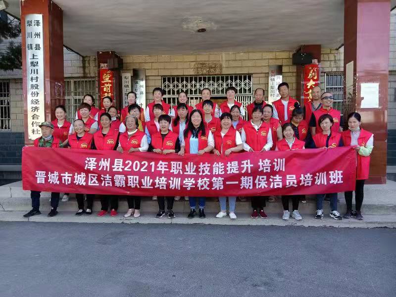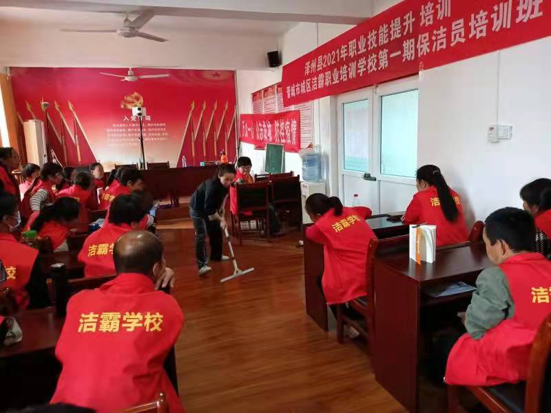日前,由潔霸培訓學校承辦的澤州縣人社局2021年全民技能提升培訓第一期保潔員培訓班在犁川鎮犁川村村委正式開班。