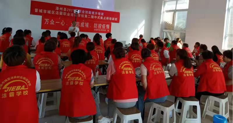 日前,由潔霸培訓學校承辦的澤州縣人社局2021年全民技能提升培訓第二期中式面點師培訓班在高都鎮保福村正式開班。