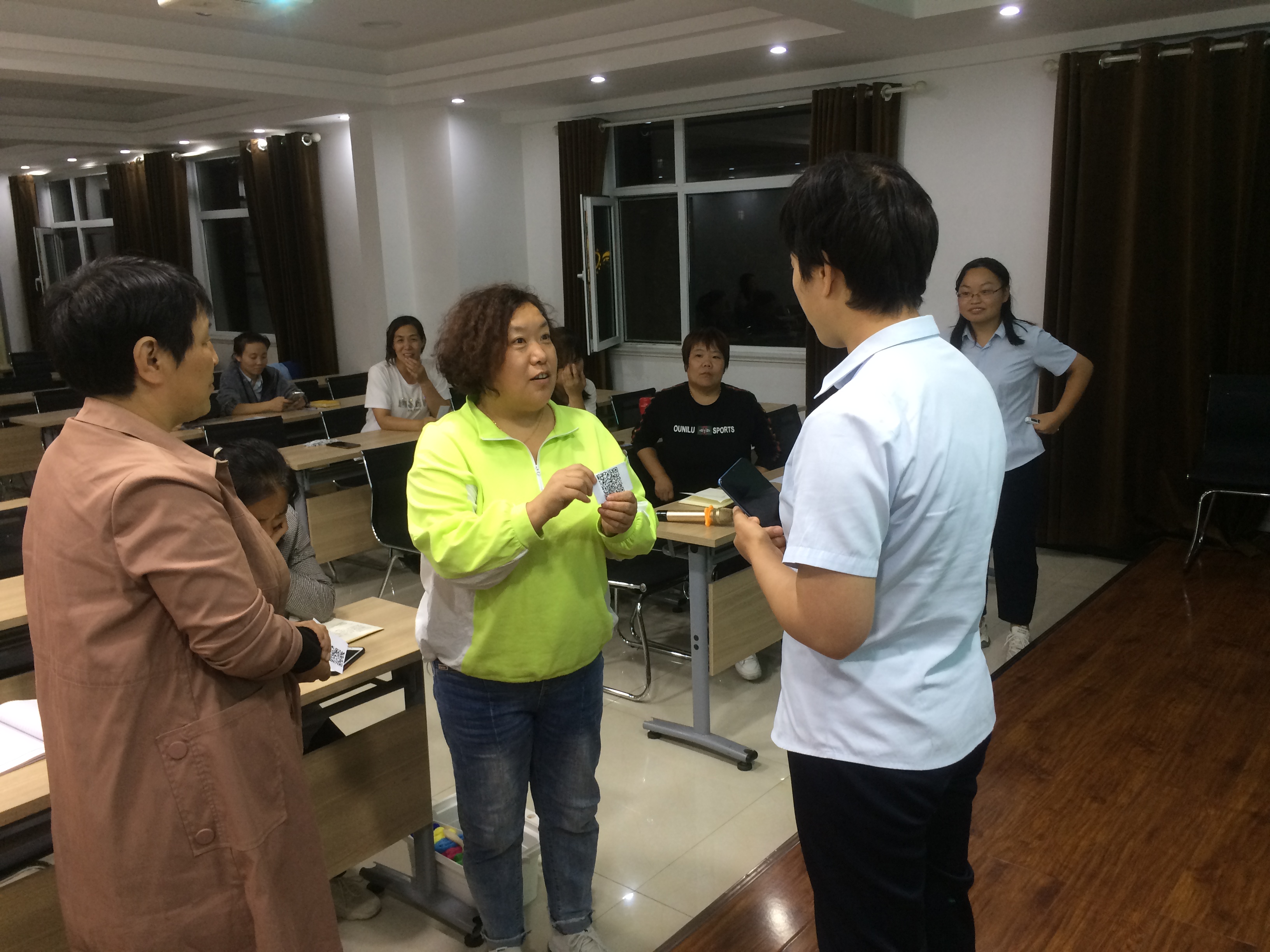 最精彩的部分是產品推廣情景模擬環節,由百潔物業經理閆秋麗和公司副總經理史志霞分別扮演產品推廣人及客戶,閆經理介紹產品時態度誠懇,內容完整,重點清晰,史總提出了好幾個問題,閆經理都作出了詳細的回答,她們的精彩表現贏得了大家的陣陣掌聲。