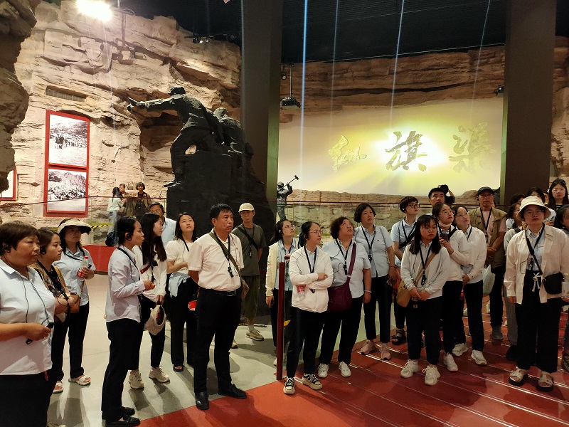 走進紅旗渠紀念館,大家跟隨講解員的腳步,在千年旱魔,世代抗爭;紅旗引領,創造奇跡;英雄人民,太行豐碑;山河巨變,實現夢想;繼往開來,精神永恒五個部分逐一駐足學習,通過一件件珍貴的物品,一幅幅生動的圖片、一幀幀震撼的畫面、一個個感人的故事,讓大家身臨其境感受到林州人民建造人工天河時不畏艱險,頑強拼搏,緊靠一錘一鏟削平1250座山頭、鑿通211個隧道、架設151個渡槽的恢弘場景。在場的各位都深深地被“自力更生、艱苦創業、團結協作、無私奉獻”的紅旗渠精神所感動,切實感受到中華民族勤勞堅韌的優良傳統,領悟社會主義是干出來的,新時代是奮斗出來的。