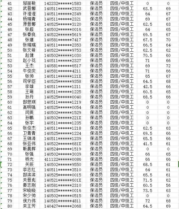 晉城市潔霸清潔服務股份有限公司職業技能等級認定中心現將2024年2月3日認定人員成績公示如下: