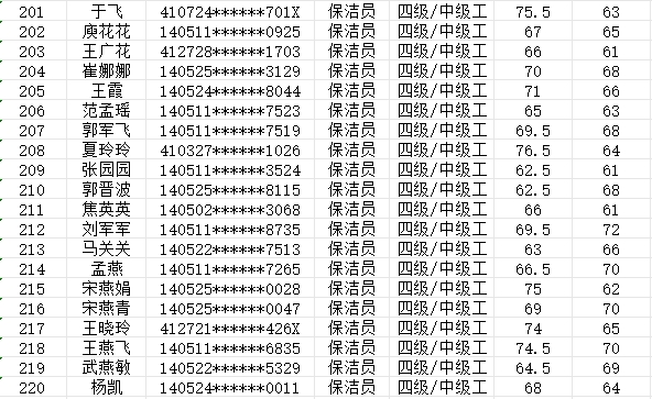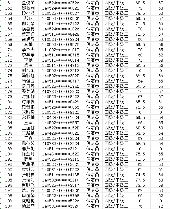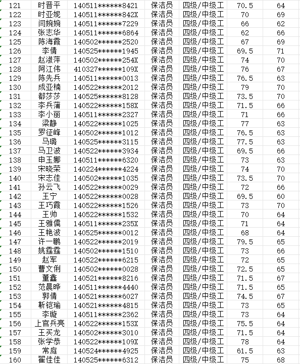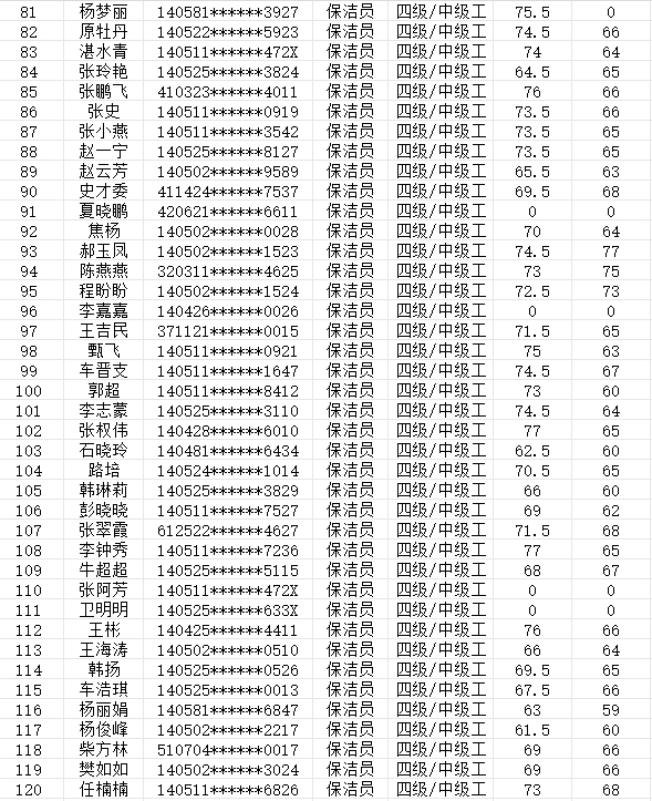 晉城市潔霸清潔服務股份有限公司職業技能等級認定中心現將2024年2月25日認定人員成績公示如下: