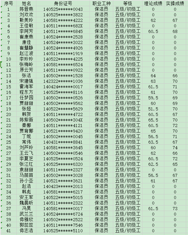 晉城市潔霸清潔服務股份有限公司職業技能等級認定中心現將2024年8月4日認定人員成績公示如下:
