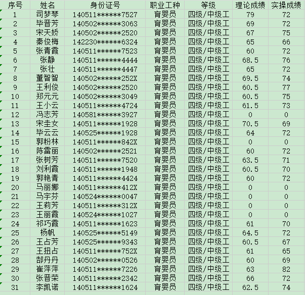 晉城市潔霸清潔服務股份有限公司職業技能等級認定中心現將2024年9月27日認定人員成績公示如下: