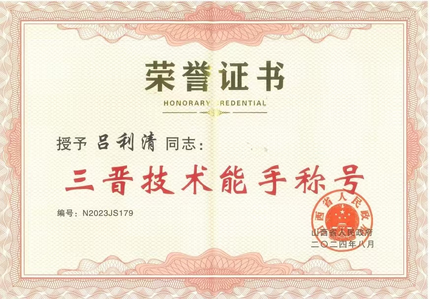 近日,山西省人民政府印發《關于授予2022—2023年度職業技能競賽優秀選手“三晉技術能手”稱號的決定》,對2022—2023年度在省級以上職業技能競賽中取得優異成績的517名選手予以表彰。其中,我公司呂利清榮獲“三晉技術能手”稱號。