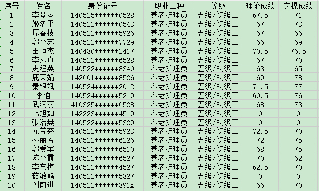 2024年10月14日第42批養老護理員初級認定人員成績公示