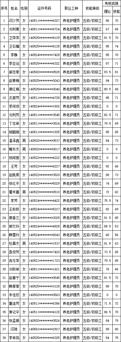 山西潔霸清潔服務集團股份有限公司職業技能等級認定中心現將2025年11月9日認定人員成績公示如下: