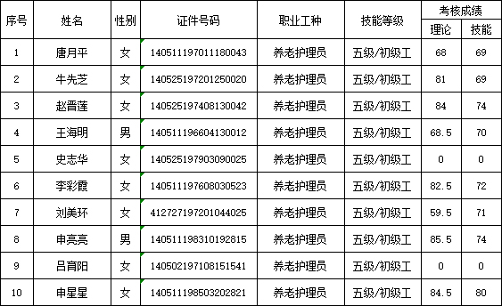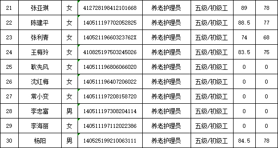 山西潔霸清潔服務集團股份有限公司職業技能等級認定中心現將2026年1月22日認定人員成績公示如下: